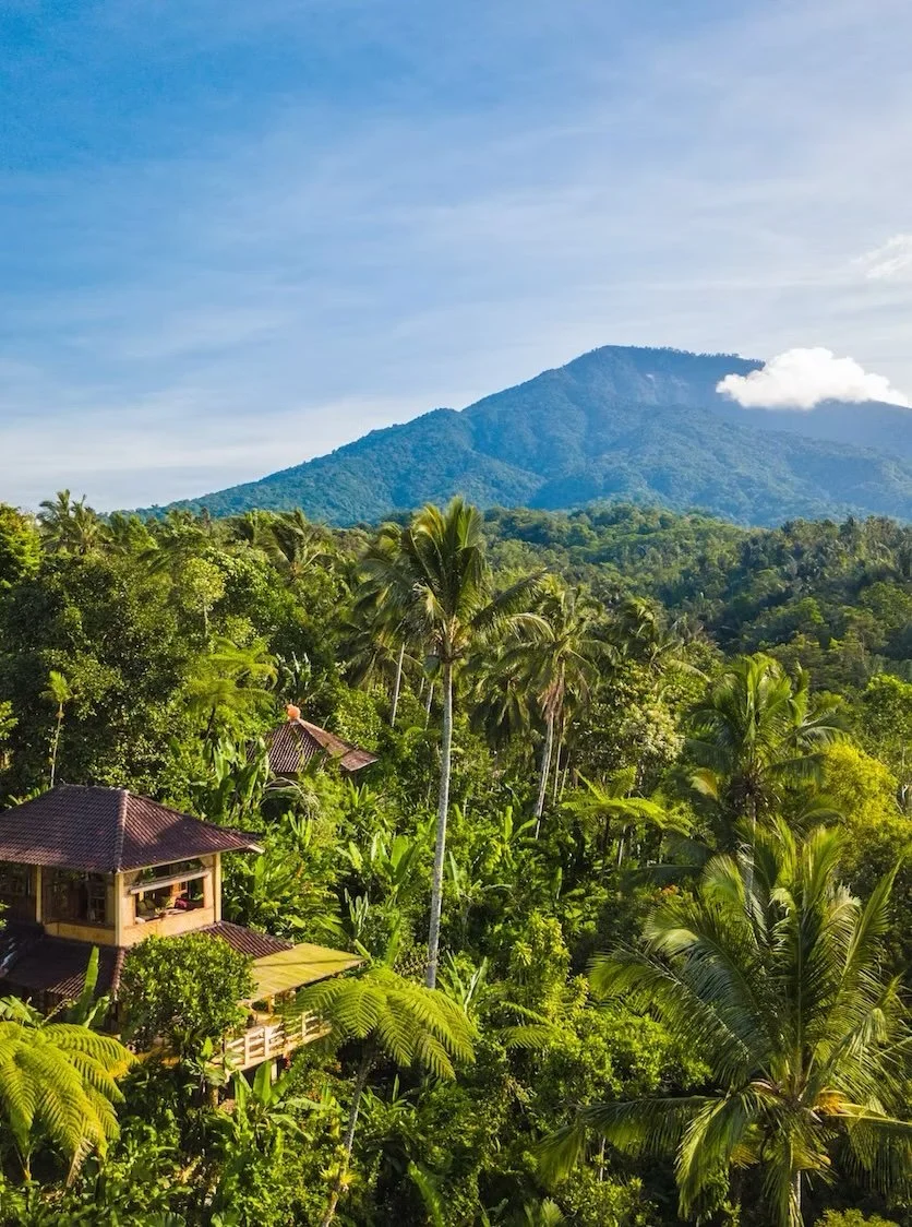 A private and romantic retreat built with exquisite Balinese hand-carved timbers, the Orchid Bungalow sits amid lush tropical permaculture gardens. Awaken to the soft glow of sunrise over mountain peaks and forested valleys — a perfect haven for peace and connection with nature.Rumah Manis SOLD OUT